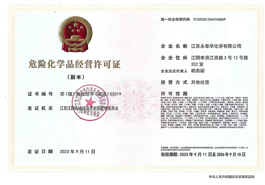 江蘇永泰華化學有限公司座落在全國百強縣的江陰市,位于國家級經濟技術開發區內長江東路777號東方廣場。交通方便,滬蓉,常合,錫澄高速交匯,東臨張家港,西臨常州,南臨無錫,北臨長江,公司依托著優越的地理位置,豐富的化工品資... [查看詳情]